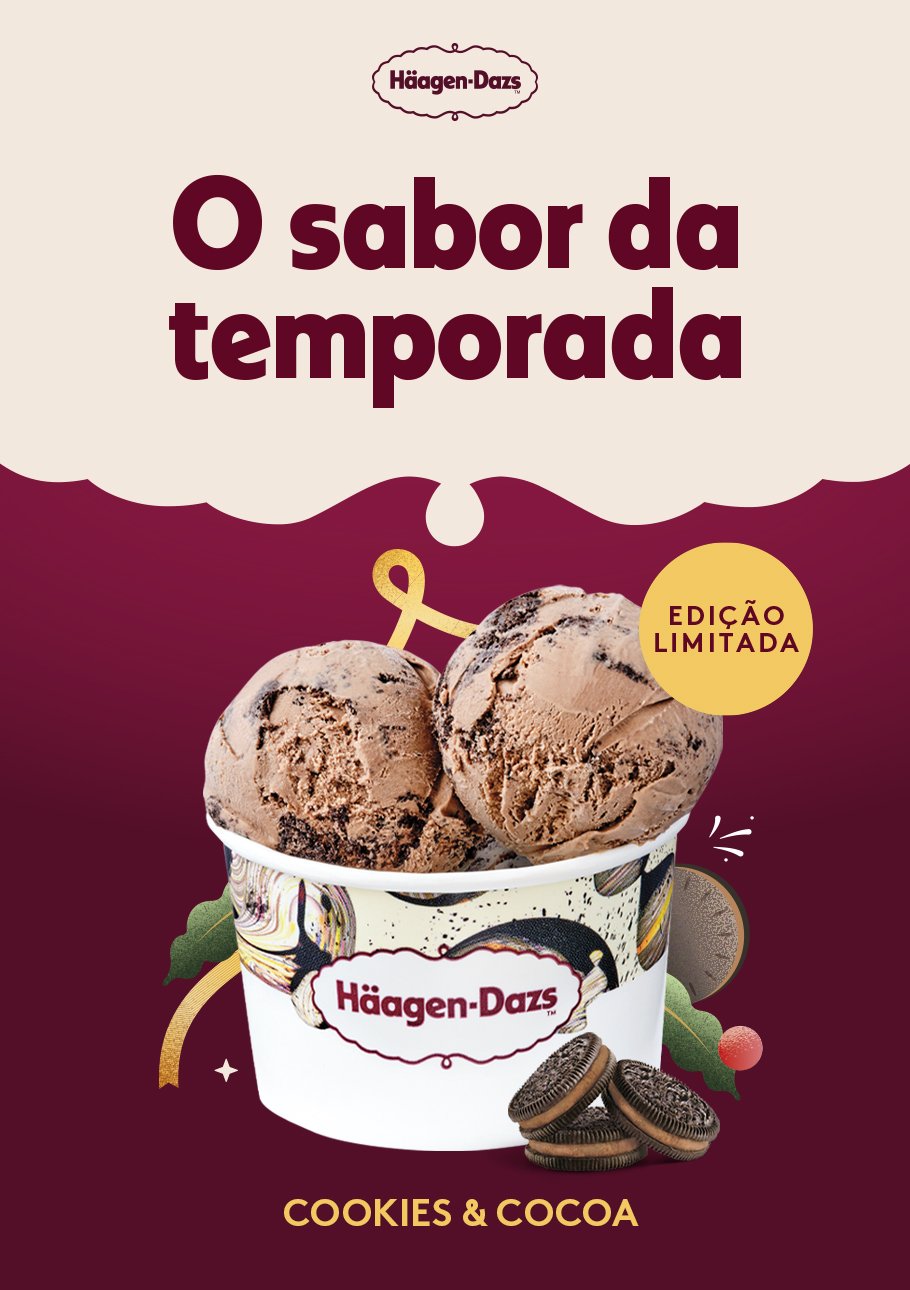 Uma coleção festiva repleta de cookies e criada para desfrutar, disponível em exclusivo nas lojas Häagen-Dazs!